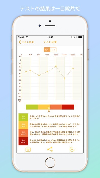 --検査結果の閲覧。複雑なデータを理解しやすい情報へと変化させることで、聴覚の状態を簡単に把握する