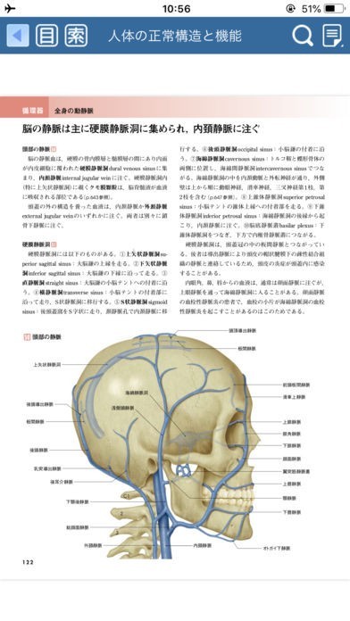 運動器や呼吸器等の情報を細かく調べる事が可能です。また索引機能が収録されているので、特定のページや記事を探したい時に便利でしょう。画像の拡大にも対応しています。