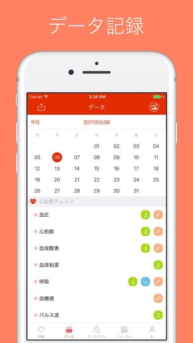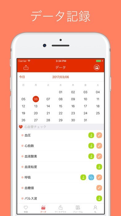 7.「健康」アプリをサポートしていますので、あなたの健康データをモニタできる「健康」アプリを測定の結果を記録します。