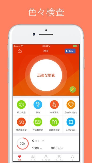 App Storeより引用健康診断宝―携帯電話で血圧、視力、心拍数、聴力を測る