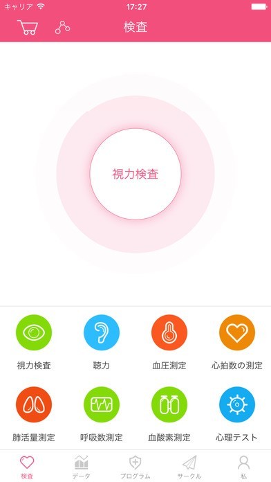 何かの外部設備が必要しない、目の検査で直接に利用者の血圧、心拍数、視力、聴力、肺活量、心理指数、色盲などの体の数値を測り、またに、狙い的に互いに健康法案を提供できる;