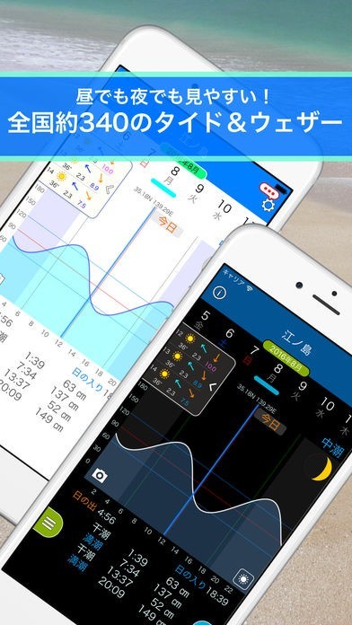 現在やこれからの潮の動きが一目で分かるので釣りに行くときにいつも使ってます。ネットワークの繋がらない場所でも使えるのでとても便利です。