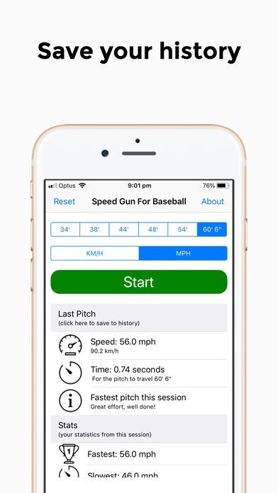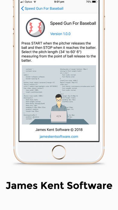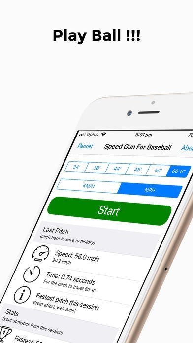 Calculates and stores speed, time, fastest ball, slowest ball and average speed. Customisable pitch length and display in either MPH or KM/H.
