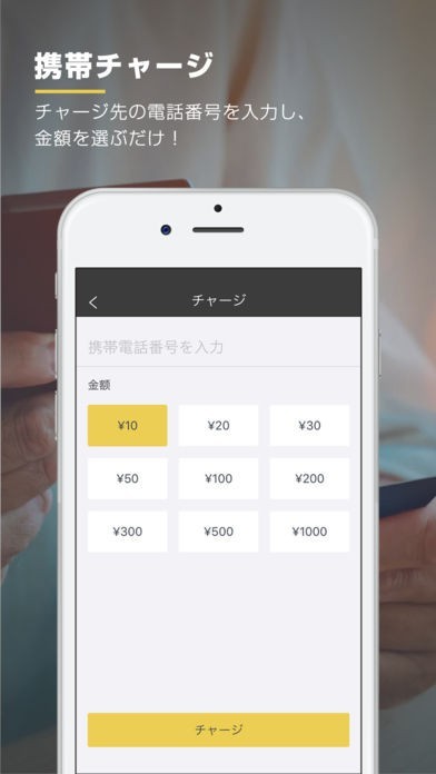 ●操作はチャージ先の電話番号を入力して、金額を選ぶだけ!