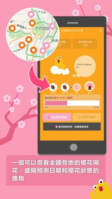 一個可以查看全國櫻花景點的開花・盛開預測日期和櫻花開花前的狀態(開花儀表)的應用