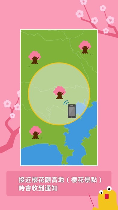 接近櫻花景點後會發出通知