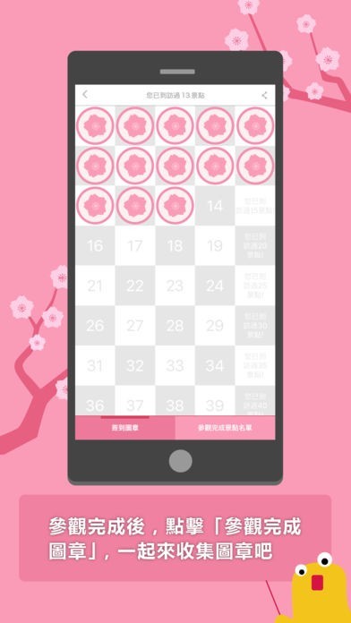 點擊「參觀完成圖章」按鈕,可以在該景點上蓋上參觀完成圖章