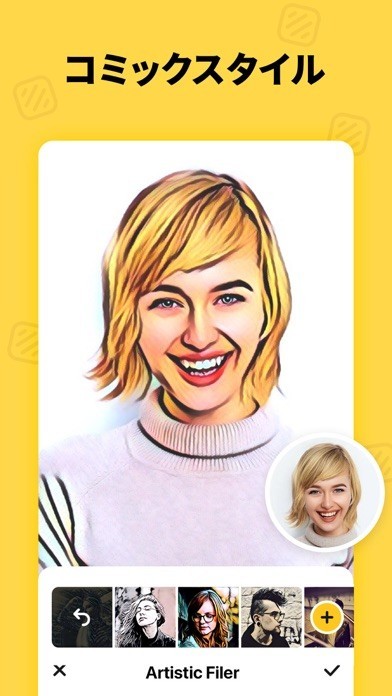 アニメ風でも落書き風でも、さまざまなエフェクトを完璧にご利用いただけます。お気に入りのカートゥーン・オプションを選択して、新しいスタイルを目指しましょう。