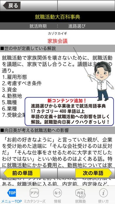 単語の定義だけでなく、就職活動への影響まで詳しく指導解説しています。