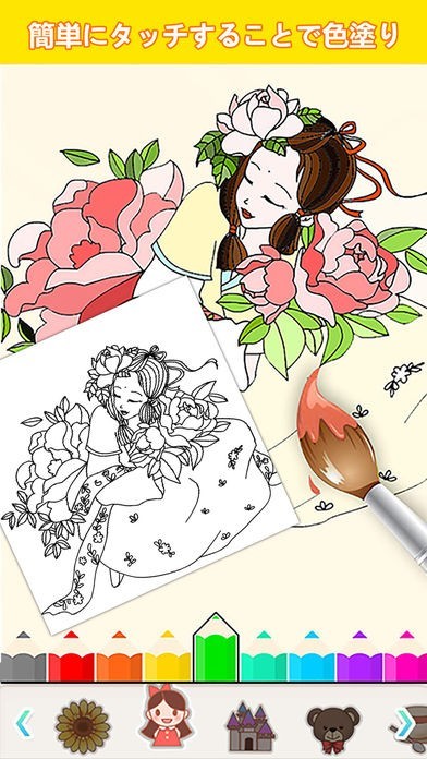 タッチするだけで色が塗れるので、絵が苦手でも安心