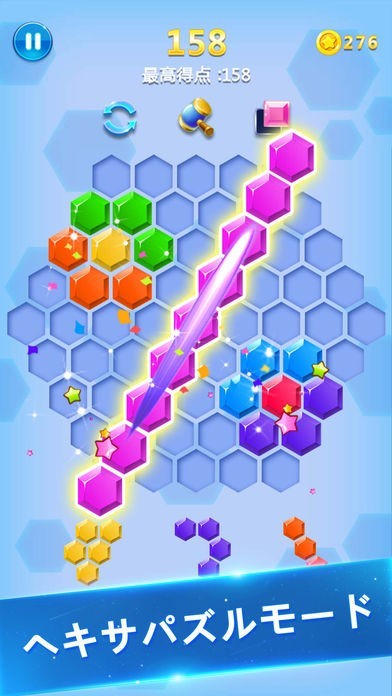 ドラッグモードや六角形ジグソーなど4種類のモードではゲームを有利に進められるアイテムを使用できます。アイテムはゲームクリアの他、動画広告の視聴でもらうことができます。