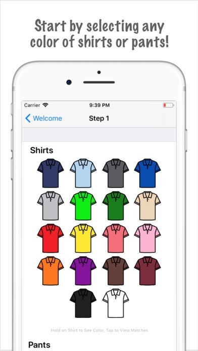 [x] Loaded with many new features the Clothes Matcher can get you looking like a pro in under one minute. Just tap your shirt or pants color and your matches start to appear!