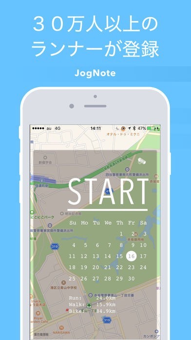 マラソンやウォーキング、自転車の距離を測定し消費カロリーを計算し記録ができる!