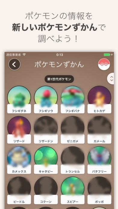 ・履歴画面でポケモンの一覧が閲覧できる