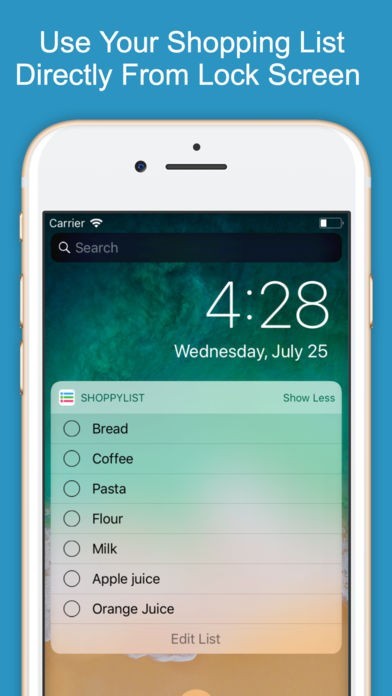 Save time by accessing your shopping list directly from your device without having to unlock it.