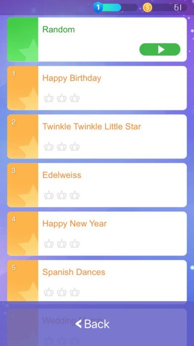 ゲームを始めたら曲目のリストを開き、上から順番に遊んでください。中には馴染のない曲もあるかもしれませんが、一通り演奏することで曲の雰囲気がわかります。全ての曲を演奏し、お気に入りの1曲を見つけてください。