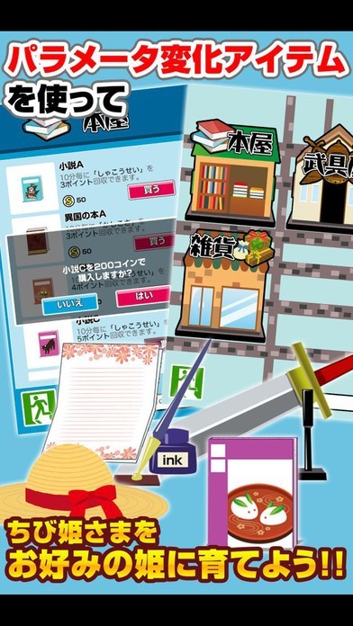 お姫様の賢さ、体力など、能力を伸ばせるよ!