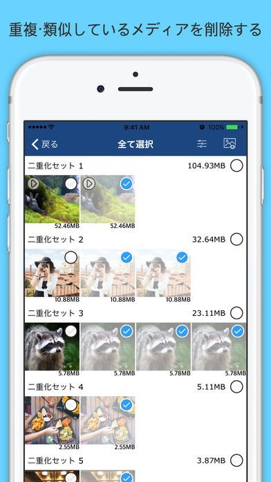 類似メディアを素早く探し出して削除や圧縮ができる!