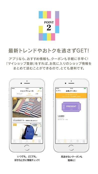 アプリなら、おすすめ情報も、クーポンも手軽に、手早く!「マイショップ登録」をすれば、お気に入りのショップ情報をまとめて読むことができ、とても便利です。