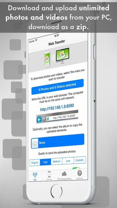 The easiest way to transfer, backup and share your photos and videos!, to your PC and between iPhones and iPads or the Cloud. It is a one-touch file sharing, transfer and backup app with live transfer of photos and instant upload to the cloud storage.