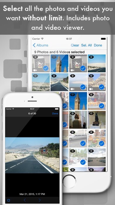 NOTE: To transfer photos from one device to another both devices need to have this app installed.