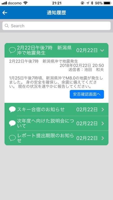 所属している学校や会社から連絡があれば、プッシュ通知を受け取ることができます。プッシュ通知によって、連絡を素早く手に入れることができます。緊急の連絡にも最適です。