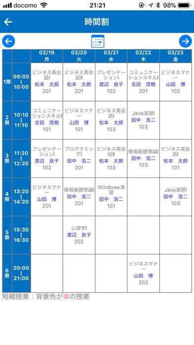 学校の授業の時間割はカレンダーに入力することができます。カレンダーを見れば、何限目にどんな講義があるのかひと目でチェックすることができます。キャンパス内で時間割をチェックしたいときにおススメです。