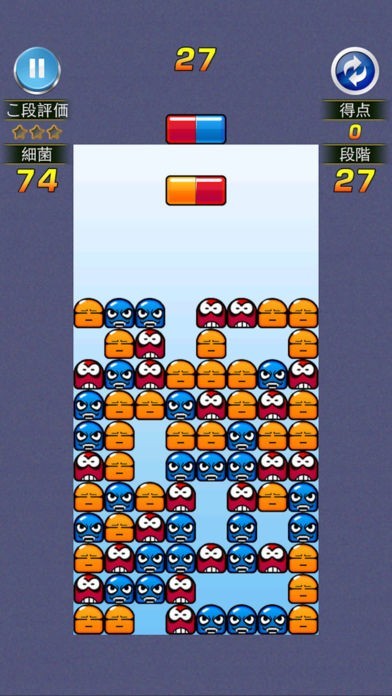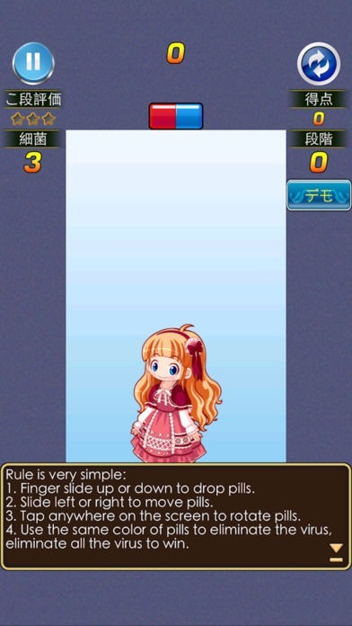 Puzzle Mode: each level is specifically designed, u could only use one or two key capsule to pass.Under this mode,time is still and capsules would not automatically fall down.