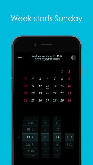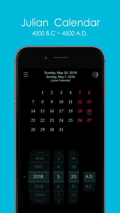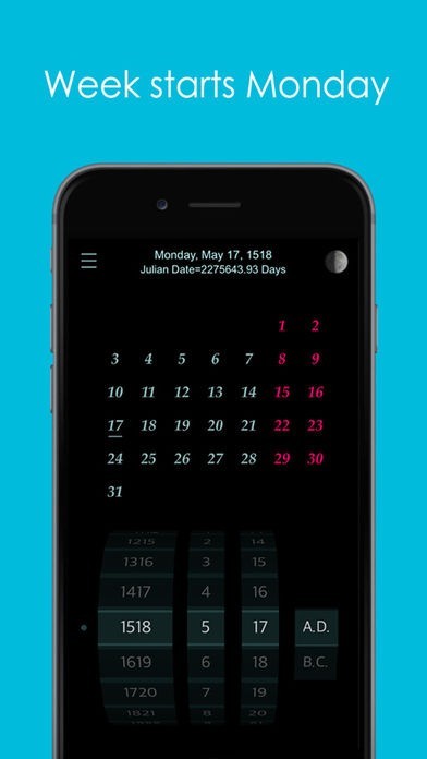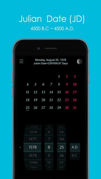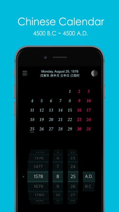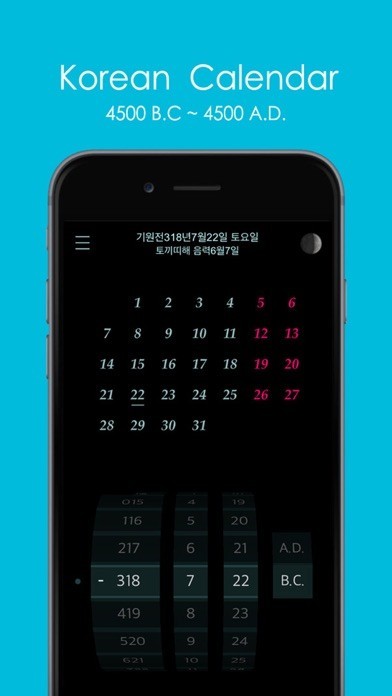 アプリには珍しいカレンダーが収録されています。紀元前4500年から紀元後4500年までのカレンダー全てを見ることができます。カレンダーを通して歴史や未来を感じてみましょう。