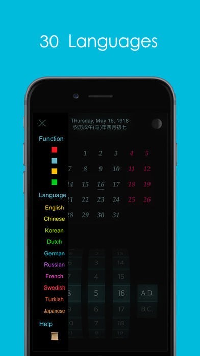 アプリには複数の暦が収録されています。中国の太陰暦やイスラム暦のほか、韓国のカレンダーやユリウス日にも対応しています。いろんな暦にふれられる機会を与えてくれます。