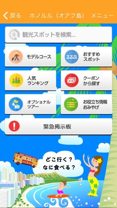 旅行ガイドブックの定番「るるぶ」が選んだ観光情報や、テーマに合わせたおすすめの観光ルートを見ることができるので、初めて訪れた慣れない場所でも効率的に観光できます。