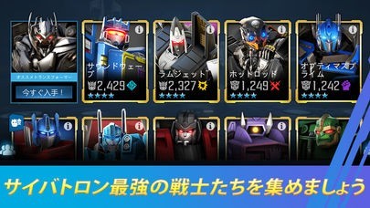 このアプリは、トランスホーマーのキャラクターを集めるゲームなのだ。