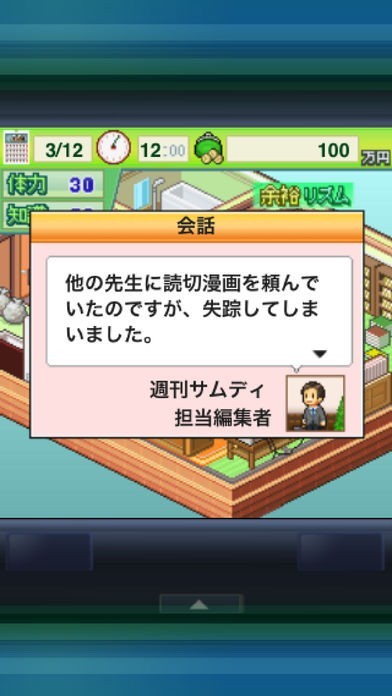 画面上には売り上げや締め切りなど漫画家として活動する上で重要な意味を持つバロメーターが表示されています。表示されている数値の数々はゲームにリアリティを与えてくれます。