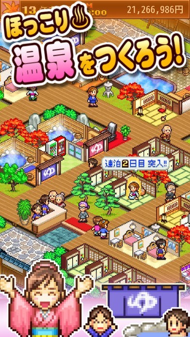 売店や食堂、ゲームコーナーなど色々な施設を自由に配置して、人気の旅館を経営しましょう。