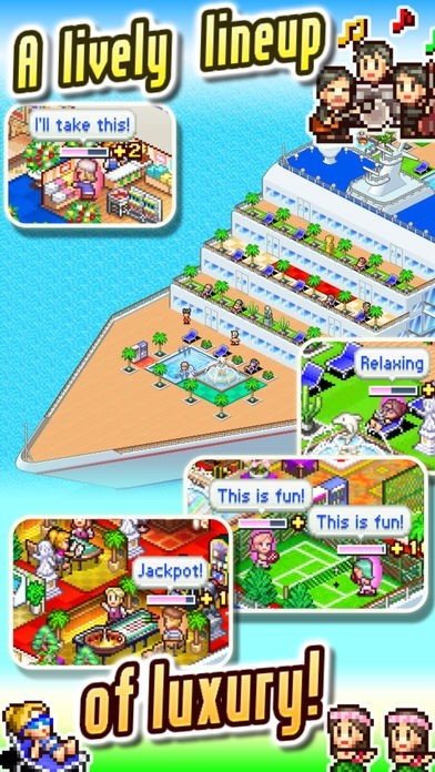 Put the right facilities next to each other and you'll score big points with passengers and reviewers. Amass enough fame and even celebrities will come flocking when you're in port!
