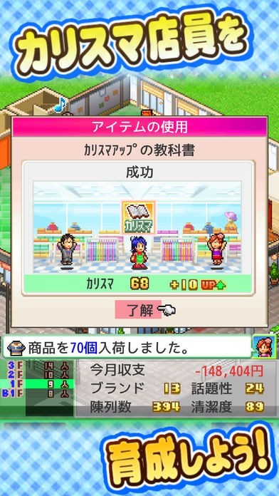 のんびりライトユーザーでも最初は秘書がついていてどういう風にショップを展開していけばいいのかアドバイスしてくれます。もしも売上が赤字になってしまった場合、こっそりと軍資金を渡してくれます。ガンガン進めたいヘビーユーザーは高速モードが用意されているのでとことん遊べます。