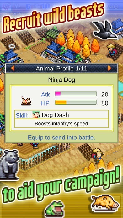 Arm your ninjas with the best gear, training, and skills and lead them to victory in the struggle for unification! You may even meet some of the era's greatest generals along the way...