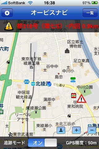 「オービスナビ」はiPhone内蔵GPSとGoogle Mapを連動し、自位置と収録されているオービス位置情報を比較してアラーム音を出すナビケーション系アプリです。