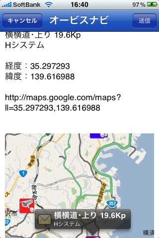 6. 気になるオービスの場所、経緯度やマップのスクリーンショットをメール送信可能