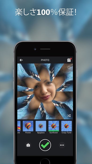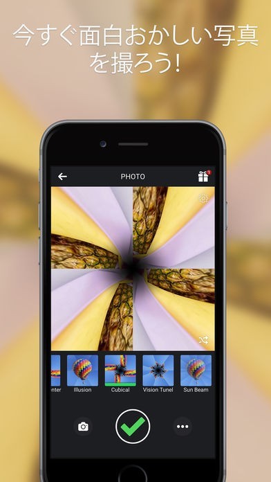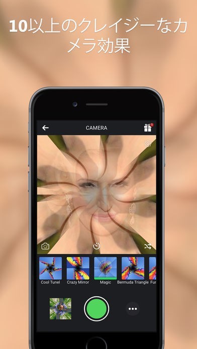 App Storeより引用Feel that SELFIES are getting boring? Why don't you try a NEW WAY of taking them? Make awesome KALEIDOSCOPIC PHOTOS with Kaleidoscope Camera for Instagram™!