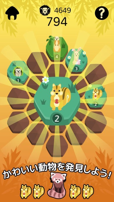 アニパルズ - 「小さな森の動物たち」の目的は、より大きな動物を見つけること! スワイプして同じ動物をくっつけると、すこし大きな動物があらわれます。操作は簡単、上と下、ナナメのスワイプだけ。スワイプすると、ぜんぶの動物がいっせいに動きます。でも世界が動物でいっぱいになるとゲームオーバー。地上最大の動物を見つけよう!