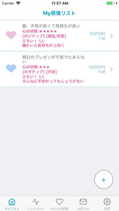 感情日記帳「こころカルテ」のスクリーンショット