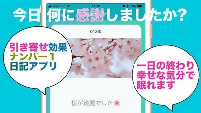 毎日寝る前に感謝の気持ちを簡単に日記で登録するだけで、普段は気が付くことがない自分自身を見つめるきっかけができます。ストレスに悩む人や1日を充実させたいと思っている人におススメです。