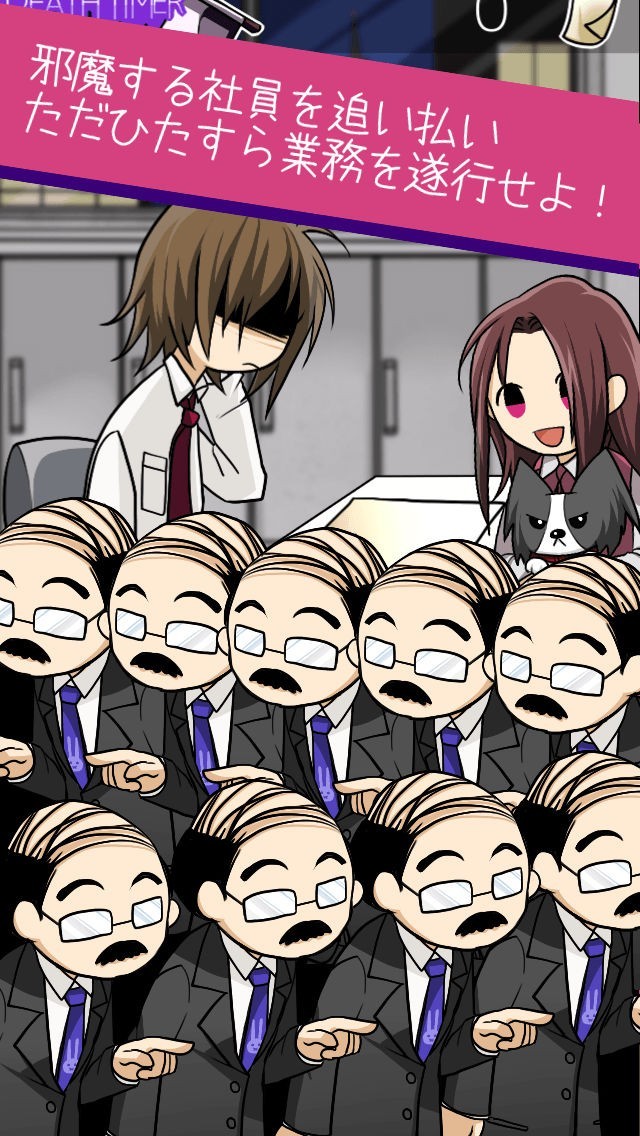 労働を邪魔する上司や女性社員をタップで撃退し、たまった資料を次々と処理してデスマを乗り切ろう!