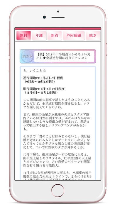 朝、今日の占いを見てモチベーションを上げています。休憩時間などに読み物をみたりしています。辛口な時もあるけど愛のある占いなので、肝に銘じて過ごしたりしています。