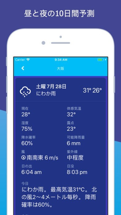 天気図だけでなく衛星写真も表示出来るようになっています。1週間後の天気も確認することが可能なので、外出予定がある時に重宝するでしょう。気温等の細かくチェックしていけます。