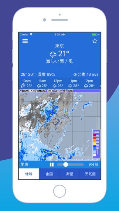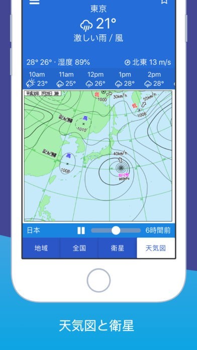 気象情報を素早く表示出来る!衛星写真への切り替えにも対応!
