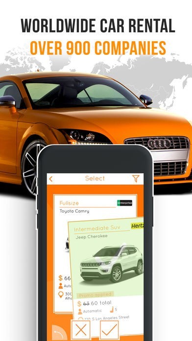 App Storeより引用Car rental app comparing 900 companies including Alamo, Enterprise, Hertz, Dollar, Sixt. Featured on USA TODAY, Techcrunch, Boston Globe, Travel Pulse and AutoRental News.