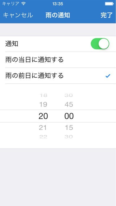 雨の通知時間を設定することができる