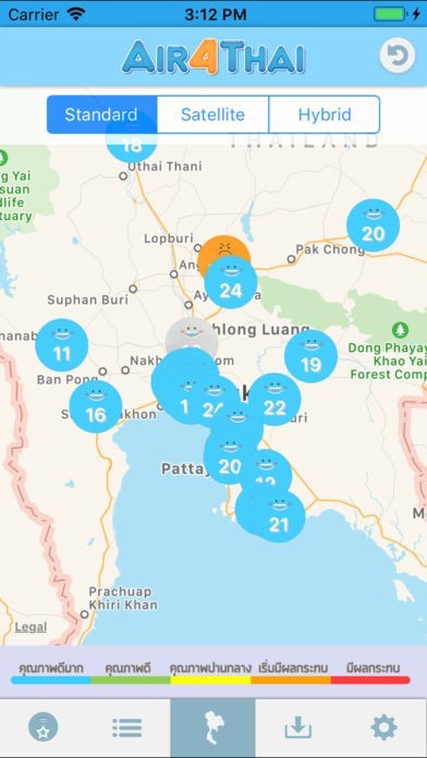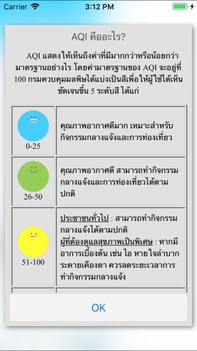 App Storeより引用แอพพลิเคชั่นรายงานดัชนีคุณภาพอากาศของประเทศไทย โดยรายงานข้อมูลรายชั่วโมง(สำหรับบางสถานี) และข้อมูลรายวัน กราฟคุณภาพอากาศย้อนหลัง 7 วัน พร้อมแผนที่แสดงโดยเป็นข้อมูลจากสถานีตรวจวัดของกรมควบคุมมลพิษครอบคลุมพื้นที่ทั่วประเทศ เพื่อเป็นข้อมูลเผยแพร่แก่ประชาชนทั่วไป โดยเฉพาะในช่วงที่เป็นสถานการณ์วิกฤติหมอกควันในพื้นที่ภาคเหนือและภาคใต้ของประเทศ